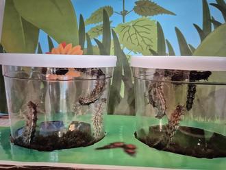 Ein besonderes Highlight war die Beobachtung echter Raupen. Die Kinder konnten täglich miterleben, wie aus kleinen Raupen dicke, satte Raupen wurden, wie sie sich verpuppten und schließlich als wunderschöne Schmetterlinge aus ihrem Kokons schlüpften. Diese Verwandlung- die sogenannte Metamorphose- beeindruckte Groß und Klein gleichermaßen.