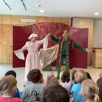 Die gesamte Aufführung über, litten und freuten sich die Kinder zusammen mit der Prinzessin und dem Froschkönig. Ein besonderer Lacher herrschte bei der Essensszene vor. Die Prinzessin musste beim Suppenessen schon feststellen, dass der Froschkönig so gar keine Tischmanier besitzt. Schlürfend und Grimasse schneidend stopfte sich der Froschkönig dann auch noch die Banane samt Schale in sein Froschmaul. Da gab es schlussendlich kein Halten mehr für Groß und Klein.