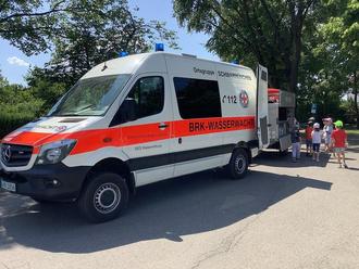Zum Abschluss durften alle Kinder den Einsatzwagen und das Rettungsboot der Wasserwacht besichtigen, die Taucherausrüstung und verschiedene Erste-Hilfe-Koffer begutachten und eine Rettungsweste anprobieren.