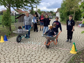 „Kita-Fest, Kita-Fest wir feiern heute Kita-Fest“- mit diesem Lied eröffneten die Kindergarten- und Krippenkinder feierlich das Fest in der Kita am Heuweg. Eingeladen waren alle Familien der Kita, die bei verschiedenen Spielstationen mächtig Spaß hatten. Bei der Schatzsuche im Sandkasten, dem Schubkarrenrennen und dem Dosenwerfen war für jeden etwas Passendes dabei. Als Ausgleich zu den lebhaften Stationen konnten Gipsfiguren bemalt werden, die anschließend als Erinnerung an diesen Tag mit Nachhause genommen wurden. Das abwechslungsreiche Buffet wurde mit mitgebrachten Speisen der Familien bestückt und ein Getränkeverkauf durch den Elternbeirat organisiert. Durch die große Unterstützung aller, wurde das Fest zu einem großen Erfolg, das noch lange in Erinnerung bleiben wird.