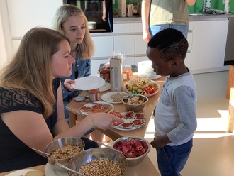Die dm-Filiale in Untermeitingen gestaltete mit den vier Kindergartengruppen der Kita am Heuweg eine Frühstücksaktion, bei der die gesunde Ernährung im Fokus stand. Im Morgenkreis wurde über allerlei Obst- und Gemüsesorten gesprochen, wie diese wachsen und warum diese so wichtig für uns sind. Anschließend bereiteten die dm-Mitarbeiter ein umfangreiches Frühstück mit Produkten aus der Filiale vor. Jedes Kind hatte so die Möglichkeit, sein Frühstück aus verschiedenen Cerealien, Müsli, Milchsorten, Broten und Aufstrichen selbst zusammenzustellen. So erlangten die Kinder nicht nur wertvolles Wissen über Ernährung, sondern machten gleich die Erfahrung wie schmackhaft ein gesundes Frühstück sein kann.