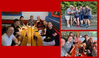 Links: Die Sportler beim Mexicaner in Tschechien. Rechts: Glückliches Team „Teakwondo“ nach dem Stockschützenturnier