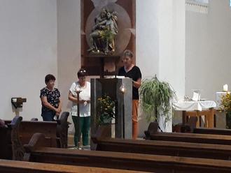 Für den 26. August plante der Verein einen Gottesdienst mit anschließendem Grillen am Feldkreuz neben der Disc-Golfanlage Untermeitingen, zu dem sich die Vorstandschaft bereits am Donnerstag für etwaige Reinigungs- und Aufräumarbeiten einfand. Aufgrund der schlechten Wetterprognose für Samstag, musste der Gottesdienst jedoch in die katholische Pfarrkirche St. Stephan verlegt werden. Der Gottesdienst, bei dem insbesondere auch der verstorbenen Mitglieder der Lechfelder Vereine gedacht wurde, fand unter der Leitung von Pfarrer Thomas Demel statt. Dass sich der schlechte Wetterbericht für den Nachmittag bestätigen sollte, zeigte sich schon während der Messe, als ein starkes Gewitter aufzog. Das anschließende gemütliche Beisammensein konnte aufgrund des starken Regens dankenswerterweise ins Foyer des katholischen Pfarrheims verlegt werden. Es nahmen rund 40 Mitglieder und Freunde des Vereins an der Veranstaltung teil.