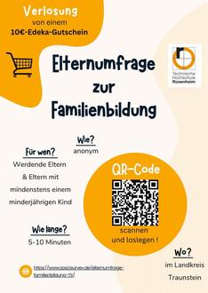 Vom 27. Mai bis zum 23. Juni 2024 führe ich (Sarah Brandstetter) im Rahmen meiner Bachelorarbeit im Studiengang Pädagogik der Kindheit (TH Rosenheim) eine Online-Umfrage zur Familienbildung im Landkreis Traunstein durch. Es können Eltern mit mindestens einem minderjährigen Kind sowie auch werdende Eltern teilnehmen.