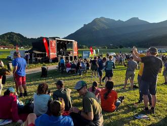 Bei Sonne, Wind und guter Musik konnten die Besucher die Athleten per Livetracking auf ihrem Weg ins Achental verfolgen.