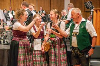 Ager stellte Clara Burkhard als neue Marketenderin der Musikkapelle vor. Mit ihr, den Eltern und der Schwester ist nun die ganze Familie Bestandteil der Musikkapelle. Marketenderin Theresa Guggenbichler überreichte ihr das traditionelle Marketenderinnen-Fassl, von Annalena Bichler gab es die vier Schnapsbecher hinzu. Mit Burkhard zählt die Gruppe wieder die angestrebten fünf Marketenderinnen, die in wechselnder Besetzung die Kapelle in ihren Auftritten begleitet.