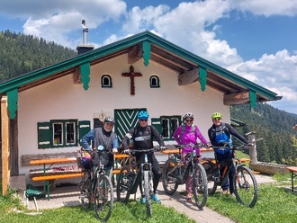 Die Bike- und Radregion Achental ist Teil des rund 1.400 Kilometer umfassenden ADFC-zertifizierten Radwegenetz Chiemgau. Jedes Jahr im Mai und Juni steigen einheimische Radguides im Rahmen des Chiemgauer Radlfrühlings auf ihre Radl und nehmen Gäste sowie Einheimische mit zu ausgewählten Touren. Im Achental nahm Radguide Andi Hell Ende Mai und an zwei Terminen im Juni Interessierte mit auf die Jochbergalm: Auf dem Unterwidholzkaser in Unterwössen verbringen die beiden Sennerinnen Moni und Evi den Sommer und brachten allen Teilnehmern ihren Alltag auf der Alm näher – vom Einheizen des Ofens in der Früh bis zum ins Bett gehen am Abend. Während die Teilnehmer gespannt den Erzählungen der beiden Sennerinnen lauschten, wurden sie bestens mit einer liebevoll zubereiteten Almbrotzeit versorgt. Abgerundet wurde das einmalige Almerlebnis, als Radlguide Andi seine Ziach auspackte und gemeinsam „aufgspuit und gsunga“ wurde.