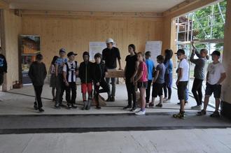 Architekt Toni Entfellner erklärt Mittelschülern den Bau der neuen offenen Ganztagschule
