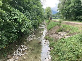 Rund 150 Meter lang ist die nun flussaufwärts umgestaltete Strecke, die ihren Anfang an der Mündung zur Tiroler Achen nimmt. Das sind 100 Meter mehr als ursprünglich geplant. Für Andreas Philipp vom Wasserwirtschaftsamt Traunstein bleibt die Maßnahme trotzdem zunächst „ein Versuch auf kleiner Strecke“. Denn noch steht nicht fest, wie sich Bach und Natur entwickeln. „Wenn es gut läuft, dient uns das, was wir jetzt gemacht haben als Muster für weitere Arbeiten.“