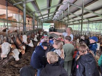 Die zweite Klasse der Grundschule Unterwössen durfte einen ganzen Vormittag auf dem Hof der Familie Schuhbeck verbringen und lernte dabei viel Neues über Kühe, das Melken und die Verarbeitung von Milch.