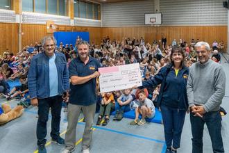 Unterwössen. Es brauchte die Turnhalle am Zollweg, damit alle Schüler, Lehrer, Schulpersonal und Gäste zu letzten Schulversammlung des Schuljahres an der Grund- und Mittelschule Unterwössen Platz fanden. „Es war ein bewegtes Schuljahr“, blickt Schulrektor Otto Manzenberger auf manches Ereignis, viele fröhliche, aber auch traurige Momente zurück. Am Ende steht mit einer 2000 Euro Spende der Schüler ein Ausrufezeichen. Der Lauftag an der Grund- und Mittelschule ist Geschichte. Wir berichteten ausführlich. Organisator und Sportlehrer Hanns Ostermaier gab das immer noch vorläufige Ergebnis der mit Stadionrunden erlaufenen Spenden von Firmen, Unternehmen, Einrichtungen aber auch Familienangehörigen bekannt. Es geht stark auf die 4000 Euro zu, freut er sich sichtlich. Für die teilnehmenden Schüler hat er großes Lob für Anstrengungen und Leistungen. Schüler, Lehrer und Elternbeirat haben miteinander um die Verwendung gerungen. Mit einem Teil des Erlöses soll der Chillraum an der Schule auf Vordermann gebracht werden. Etwas soll für den Pausenhof übrigbleiben. Der größte Teil der Summe - und „das ist nichts weniger als großartig“, beschreibt Kurt Züge - geht mit 2000 Euro an das Projekt „Wünschewagen“, deutschlandweit angesiedelt beim Arbeiter-Samariter-Bund. Was das ist? Kurt Züge und Silvia Kaske, ehrenamtliche Helfer im Projekt, und Wastl, der große Stoffbär, stellten das den Kindern vor. Manche Menschen - das können nicht nur alte, sondern auch ganz junge sein - erkranken so schwer, dass sich ihr Leben dem Ende zuneigt. Oft sind sie schon so betroffen, dass sie an medizinische Apparaturen angeschlossen sind. Diesen Menschen bereitet der Wünschewagen einen ganz großen Tag und erfüllt einen Lieblingswunsch, irgendwo hinzufahren. In einem großen umgebauten Krankenwagen gibt es für sie dann einen Ausflug an ein Lieblingsziel. Das kann ein besonders hoher Berg sein, der Gardasee, ein Ferienpark, ein Zoo und - ganz weit weg - schon einmal die Nordsee. Mit von der Partie ist der Wastl mit seinem fröhlichen Stoffbärlachen. Das hebt die Stimmung und so werden es - bei allem Leid der „Fahrgäste“ - immer schöne, lustige Fahrten. Für ihre Fahrgäste ist das großartige Abenteuer kostenlos. Das übernimmt alles das Projekt „Wünschewagen“. Das Benzin, die Fahrt mit der Gondel auf den Berg, der Eintritt, alles, was so anfällt ist kostenlos, schildert Silvia Kaske und erzählt von wunderbaren Erlebnissen. Die Helfer, wie Kurt Züge und sie, organisieren das alles im Ehrenamt. Und deshalb ist die Spende der Kinder so großartig. „Klopft euch auf die Schulter“, so Kurt Züge. „Tatsächlich schenkt ihr Freude und Leben am Ende einer Lebensphase.“ Und Rektor Otto Manzenberger ergänzt: „Glück ist das Einzige, was wächst, wenn man es verschwendet.“ Silvia Kaske und Kurt Züge versprechen den Kindern einen Bericht und Bilder von den Wünschefahrten, zu denen ihre Spende beiträgt. Ansonsten brachte die Schulversammlung die Verleihung der Urkunden der Bundesjugendspiele an die Besten und die Siegerehrung zum Fußballturnier. Die Schulgemeinschaft verabschiedet einige lieb gewordene Menschen, wie Schüler, die die Schule wechseln, oder die FSJ-lerin Emma Wagner, die Sozialarbeiterin Linda Gey oder die Referendarin Alessandra Ehrenleitner, die nach Abschluss ihrer Ausbildung als Lehrerin an eine andere Schule wechselt. Und dann gab es ein dickes Dankeschön an die guten Geister der Schule, angefangen bei Schulsekretärin Gabi Haggenmiller, Hausmeister Mario Mahn und die Reinigungskräfte.