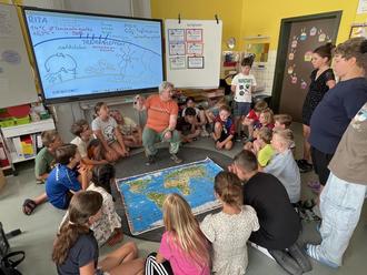 Am 25.6.2025 besuchte uns die Expertin Rita Lunghamer vom Klimaprojekt atmosfair und erklärte uns den Klimawandel: Weltweit steigen die Temperaturen und das Wetter wird extremer. Stürme beschädigen Häuser und überfluten Straßen. Dürreperioden machen die Ernte auf den Feldern kaputt und trocknen die Flüsse aus, sodass die Menschen weniger zu essen und zu trinken haben. Auch viele Kinder sind davon betroffen. Sie flüchten mit ihren Familien und verlieren dabei ihre Heimat. Verursacht wird der Klimawandel durch viele CO2 Ausstöße durch Verkehrsmittel (Autos, Flugzeuge), durch Fabriken, durch die Verbrennung von fossilien Energien wie Kohle, Erdöl und Erdgas, aber auch durch die moderne Landwirtschaft. Kühe pupsen und stoßen Methan aus. Was können wir tun? Erneuerbare Energiequellen nutzen: Umstieg auf Sonne, Wind und Wasser zur Stromerzeugung! Keine Elterntaxis nehmen, sondern zu Fuß gehen! Mit dem Fahrrad oder Roller fahren und Fahrgemeinschaften bilden! In den Urlaub mit dem Zug reisen, statt mit dem Auto, weniger fliegen und in der Heimat Urlaub machen! Lebensmittel aus regionalem Anbau kaufen, weniger Fleisch und Wurst essen! Sparsam mit Wasser und Strom umgehen! Sei auch du dabei und werde Klimaschützer!