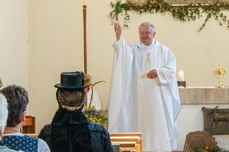 Unterwössen. An einem wunderbaren Sommermorgen zeigte sich die Kuratiekirche Oberwössen in einem bunten Bild, bestimmt auch durch die Trachten im Kirchenschiff und die Kräuterbuschen zu Mariä Himmelfahrt. Die segnete Pfarrer Dominik Bartsch zu Beginn des Gottesdienstes.