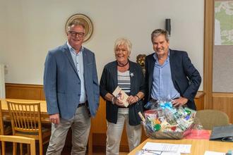 Bärbel vom Dorp bat um das Wort. Sie danke für den netten Abschied, der ihr sicherlich nicht leichtfalle. Unterwössen sei ihr sehr ans Herz gewachsen. Andererseits sei sie aber vor kurzem 80 Jahre alt geworden und habe deshalb entschieden, mehr ihrer Zeit auf Gesundheit und Freizeit zu verwenden. Sie dankte den beiden Bürgermeistern, Altbürgermeister Hans Haslreiter und Ludwig Entfellner, lobte die gute Zusammenarbeit mit der Verwaltung, voran mit Geschäftsleiter Thomas Müllinger und Jana Schmidt-Hindinger aus dem Bauamt. „Ich wünsche allen in Unterwössen alles Gute und Gesundheit, der Gemeinde eine gute Entwicklung.“ Bürgermeister Entfellner und Verwaltungsleiter Müllinger verabschiedeten vom Dorp mit Geschenken.