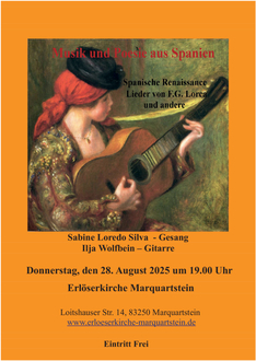 | 19.00 Uhr : | Konzert: "Musik und Poesie aus Spanien" |
