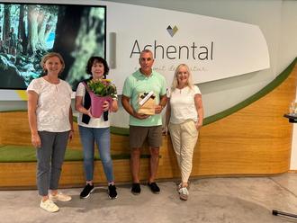 v.l.n.r.: Martina Dufter (Achental Tourismus), Laura Misterek und Eric Rätzke, Jessica Landler-Zirngibl (Achental Tourismus)