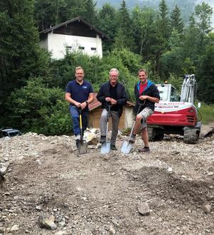 Nun haben die ersten Erdarbeiten begonnen. Bürgermeister Entfellner, Stefan Wimmer (Geschäftsführer des Wasserwerks) und Wassermeister Wolfgang Fladischer freuen sich, dass es nach der intensiven Planungsphase nun mit den Bauarbeiten losgehen kann.