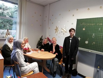 Schüler der OGTS Mittelschule hatten die Idee, für Ihre Klassenlehrer ein Weihnachtscafè anzubieten. Dafür haben alle zusammen fleißig Plätzchen und Muffins gebacken, das Zimmer weihnachtlich dekoriert und schließlich als „Ideengeber“ selbst frisch zubereiteten Cappuccino serviert.