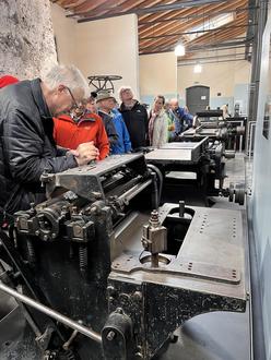 Dr. Felix Egloff, der Vorsitzende des Fördervereins Maxhütte Bergen, führte durch das Museum. Er machte den Teilnehmern Geschichte „mit eigenen Händen erlebbar“. Sie prüften das Gewicht von Roheisenbarren, erspürten die Oberfläche von Gegenständen aus Gusseisen und fühlten den Guss-Sand fühlen. Ein Video informierte über die Gusseisenproduktion und nahm die Zuhörer mit auf eine Zeitreise von den Anfängen der Eisenverarbeitung bis ins Heute.