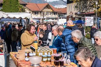 Besonderen Anklang fanden die Holzwarenstände, darunter der von Hannes Walda. Wie jedes Jahr verkaufte er seine selbstgebauten Vogelhäuschen für einen guten Zweck. Daneben lockten kulinarische Düfte: frisches Obst und Gemüse aus der Region, Speck aus Südtirol, Käse, Liköre, Marmeladen, Pestos, herzhafte Wurst – vieles selbst produziert. Die Besucher probierten, noch mehr kauften. Händler und Besucher kennen sich teils seit Jahren.
