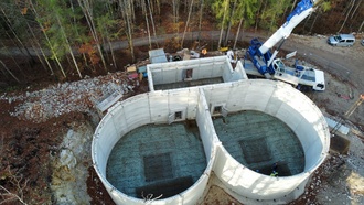 Erfreuliches gibt es von der Baustelle am neuen Zweikammer-Hochbehälter zu berichten. Die Arbeiten laufen zügig und reibungslos. Die Wandmontage der Fertigbetonteile ist abgeschlossen. In den Wasserkammern werden aktuell die Bodenplatten betoniert. Bis Anfang Dezember können die restlichen Betonarbeiten voraussichtlich abgeschlossen werden.