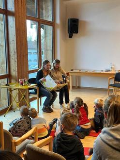 Ingrid Gut von der Buchhandlung Mengedoht in Marquartstein hat den älteren Kindern über „Der Tag, an dem die Oma das Internet kaputt gemacht hat“ berichtet.