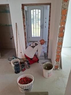 Bodenleger, Maler und Fliesenleger werden bis Ende des Jahres mit ihren Arbeiten fertig sein.