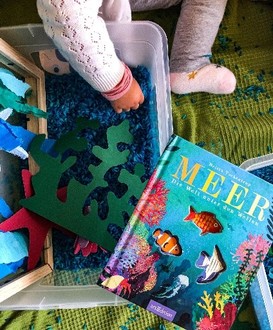 Am Freitag, den 12. April kamen wieder viele Kleinkinder und Eltern in der Bücherei zusammen um sich mit dem Thema „Meer“ zu beschäftigen. Die Kinder lauschten den Reimen aus dem Buch „Meer, Die Welt unter den Wellen“ und erfuhren, wie sich Fische, Delfine, Seepferdchen, Feuerfisch, Kugelfisch, Tintenfisch, Qualle, Hai, Seekuh und Wal im Meer und im Korallenriff tummeln. Dazu durften sie die Tiere als Gegenstände im „Meer“ - einem sensorischen blauen Reisbad - befühlen. Das Lied „Ich schaukle auf dem Wasser“ von Detlev Jöker und das Fingerspiel „Ein Fisch, der schwimmt im Meer“ rundeten das Thema ab. Applaus gab es für Julia Alberter, die bisher mit schönen Bastelideen die vorgelesenen Bücher hat lebendig werden lassen. Sie kann leider aus beruflichen Gründen nicht mehr die Lese-Raupen-Stunde mit vorbereiten. Wer sich bei diesem Angebot für die Kleinen beteiligen möchte, ist herzlich willkommen im Team.