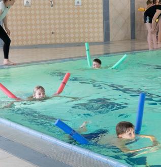 Unterwössen. Engagement auf allen Seiten in einer verfahrenen Situation. Schüler der Grund- und Mittelschule Unterwössen haben Schwimmunterricht.