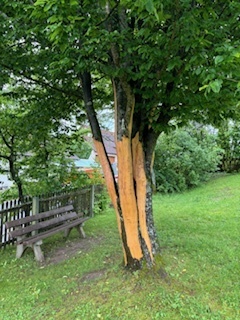 Aufgrund der starken Beschädigung wird der Baum wohl entfernt und eine Ersatzpflanzung vorgenommen werden müssen.