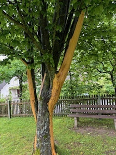 Am 18. Mai 2024 wurde Frau 1. Bürgermeisterin Regina Wohlpart durch einen Gemeinderat auf die Beschädigung eines Baumes am Kinderspielplatz „Im Stämmig“ in Viereth hingewiesen. Hier wurde die Rinde des großen Baumes mutwillig abgelöst.