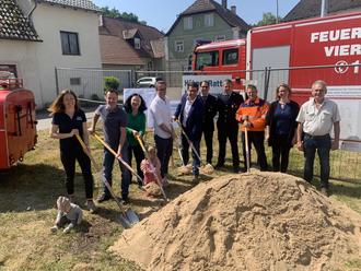 Am Freitag, den 26. Mai 2023 konnte der offizielle Spatenstich für das neue Dorfgemeinschaftshaus in Weiher, das mit einer Einstellmöglichkeit für den Tragkraftspritzenanhänger der Freiwilligen Feuerwehr einhergeht, durchgeführt werden.