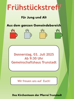 | 09:30 | Trunstadt | Frühstückstreff im Gemeinschaftshaus |