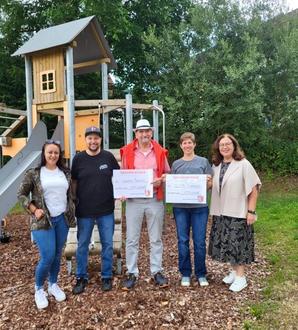 Marina Graf von der Gemeinde Viereth-Trunstadt, Matthias Schneider und Wolfgang Amschler als Vertreter der Vereine Viereth, Ulrike Naumann die Leiterin der Kita Trunstadt und Regina Wohlpart die 1. Bürgermeisterin der Gemeinde Viereth Trunstadt