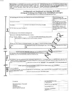 Auf der Rückseite der in Kürze zugestellten amtlichen Wahlbenachrichtigung befindet sich der Antrag auf Erteilung eines Wahlscheins mit Briefwahlunterlagen. Neben der Möglichkeit diesen Antrag elektronisch zu stellen (Bürgerserviceportal, Internet, QR-Code), können Stimmberechtigte die Unterlagen bei der Gemeindeverwaltung persönlich oder per Bevollmächtigten beantragen.