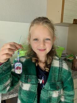 „Mir hat im September das Basteln der Schlüsselanhänger aus Schrumpffolie am besten gefallen. Es gab coole Motive und das Zugucken beim Schmelzen hat echt Spaß gemacht!“.
