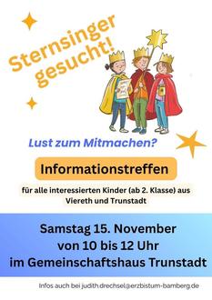 | 10:00 | Trunstadt | Sternsinger-Infotreffen im Gemeinschaftshaus |