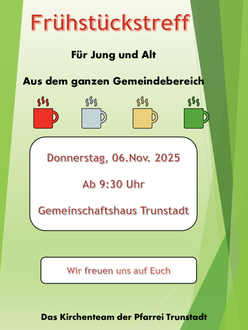| 09:30 | Trunstadt | Frühstückstreff im Gemeinschaftshaus |