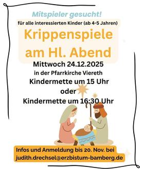| 16:30 | Viereth | Krippeneröffnung, anschl. Nikolausfeier der Vereine am Dorfplatz |