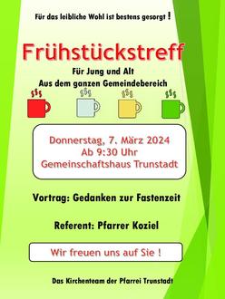 | 09:30 | Trunstadt | Frühstückstreff im Gemeinschaftshaus |