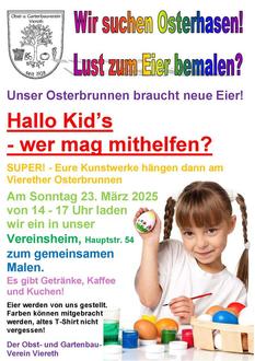 Am 23. März 2025 von 14 bis 17 Uhr laden wir alle Kid’s zum Ostereierbemalen in unser Vereinsheim, Hauptstrasse 54 ein.