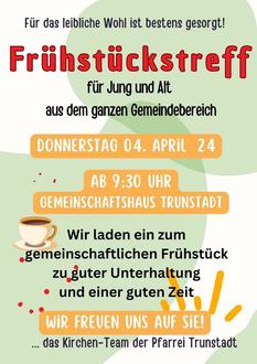 | 09:30 | Trunstadt | Frühstückstreff im Gemeinschaftshaus |