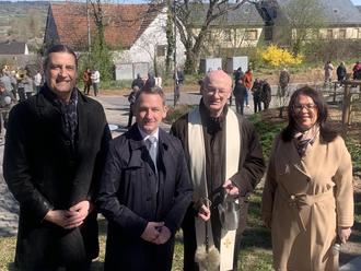 Bei blauem Himmel und Sonnenschein wurde der neue Platz am Sonntag, den 06.04.2025 eingeweiht. Mit Mitteln aus der Städtebauförderung wurde ein großer Abschnitt der gesamten Entwicklung abgeschlossen und ein zentraler Ort für Begegnungen geschaffen. Im Rahmen der Baumaßnahme wurden auch die angrenzenden Freiflächen aufgewertet und die vorhandenen Erschließungsstraßen funktionell neu gestaltet und angelegt. In seinem Grußwort ging Herr Mohnkorn von der Regierung von Oberfranken auf die Förderung mit Mitteln aus der Städtebauförderung ein. So konnte im Rahmen des vor Jahren durchgeführten Ideenwettbewerbes auch die letzte Erschließungsbaumaßnahme in Viereth realisiert und abgeschlossen werden. Mit der offiziellen Einweihung und Benennung des Platzes wird unser Pfarrer Bogatschef in Dankbarkeit und Respekt in unserer Gemeinde weiterleben. Wir werden uns an sein Schaffenswerk erinnern und dies bewahren.