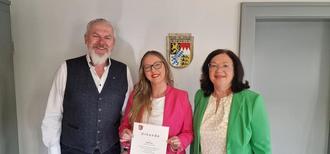 Mit Frau Katja Kraus hat die Gemeinde Viereth-Trunstadt zum 1. Mai 2024 eine weitere Standesbeamtin im Rathaus. Frau Katja Kraus ist seit dem 15. Juli 2023 bei der Gemeinde Viereth-Trunstadt im Einwohnermeldeamt und Passamt tätig und hat im April das Grundseminar im Familien- und Personenstandsrecht besucht und die Prüfung erfolgreich abgelegt. Weil die Gemeinde sich in den nächsten Jahren zukunftsfähig aufstellen möchte und dabei auch bereits bewährten jungen Mitarbeitern Vertrauen schenkt, beschloss der Gemeinderat in seiner Aprilsitzung einstimmig Frau Katja Kraus zur Standesbeamtin zu bestellen. Von 1. Bürgermeisterin Regina Wohlpart erhielt sie im Beisein von Geschäftsleiter und Standesamtsleiter Gerd Franke die Bestellungsurkunde zur Standesbeamtin für den Standesamtsbezirk der Gemeinde Viereth-Trunstadt. „Wir freuen uns, mit Frau Katja Kraus eine motivierte Kollegin gefunden zu haben, die bereit war, sich zusätzlich in das für sie neue Aufgabengebiet einzuarbeiten“ betonte Frau Regina Wohlpart bei der Übergabe der Bestellungsurkunde.