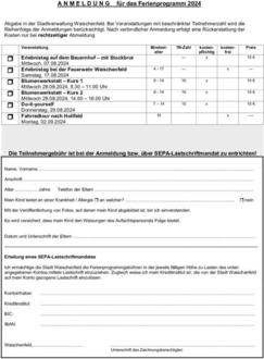 Anmeldeformular Ferienprogramm Stadt Waischenfeld