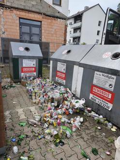 In letzter Zeit kam es zu extremen Ablagerungen neben den Glascontainern beim REWE-Markt. Der herumliegende Müll ist kein schöner Anblick, ein Ärgernis für den Grundstückseigentümer und eine Zumutung für denjenigen, der ihn wieder beseitigen muss.