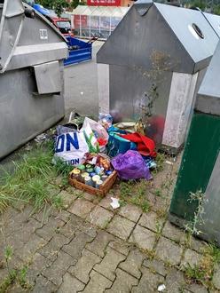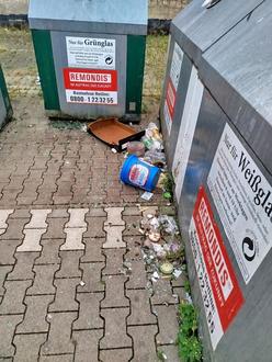 In letzter Zeit häufen sich die Verschmutzungen (Scherben etc.) und Müllablagerungen an den Glascontainern auf dem REWE-Parkplatz. Der Müll muss dann vom städtischen Bauhof aufwendig entsorgt und der Platz gereinigt werden.