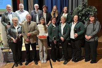 Dann ging es weiter zu den sportlichen Ehrungen. Emelie Czischek machte den 1. Platz der Bayerischen Meisterschaft im Nachwuchs-Vierkampf. Tatjana Hartl wurde 3. Bayerische Meisterin mit dem Zimmerstutzen, Damenklasse I. Die Eisstock-Damen Claudia Fichtl, Verena Fink, Angelika Hofer, Jaqueline Köler-Beck und Karola Spitzer belegten den 3. Platz der Bayernliga. Die Schützen des RKK Roßbach/Wald waren bei der Landesmeisterschaft 2025 sehr erfolgreich. Elfriede Kerscher belegte den 1. Platz KK-Liegendkampf Damen V, Richard Artmann den 1. Platz KK-Liegendkampf Herren V und 3. Platz KK 50 m Auflage Senioren IV., Josef Kerscher den 3. Platz KK 50 m Auflage Senioren II und Markus Kerscher den 3. Platz Großkaliber 300 m Herren I.