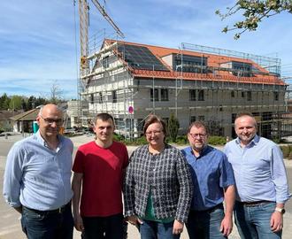 Die Firma Helmberger hat diesen Auftrag übernommen. Anlässlich des Projekteabschlusses haben sich Bürgermeisterin Haimerl, Bürgermeister Schwarzfischer, Geschäftsstellenleiter Held und zwei Vertreter der Firma Helmberger, Thomas Helmberger und Lukas Schwarzfischer, getroffen.