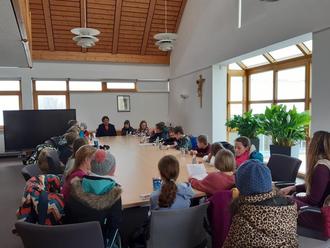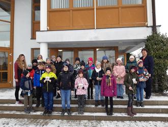 Im Januar war die 4. Klasse zu Besuch bei der Bürgermeisterin Fr. Haimerl. Gemeinsam mit ihrer HSU-Lehrerin Frau Wipplinger machten sich die Schülerinnen und Schüler auf den Weg ins Rathaus, wo sie Frau Haimerl schon erwartete. Sie zeigte ihnen die verschiedenen Ämter im Rathaus und erklärte gemeinsam mit den Angestellten deren Aufgaben, die die Klasse bereits im Unterricht kennengelernt hatte. Sogar ins Büro der Bürgermeisterin durften die Kinder, wo sie die Amtskette und das Goldene Buch der Gemeinde bestaunten. Anschließend führte Frau Haimerl die 4. Klasse in den Sitzungssaal, wo sie schon eine kleine Stärkung vorbereitet hatte.